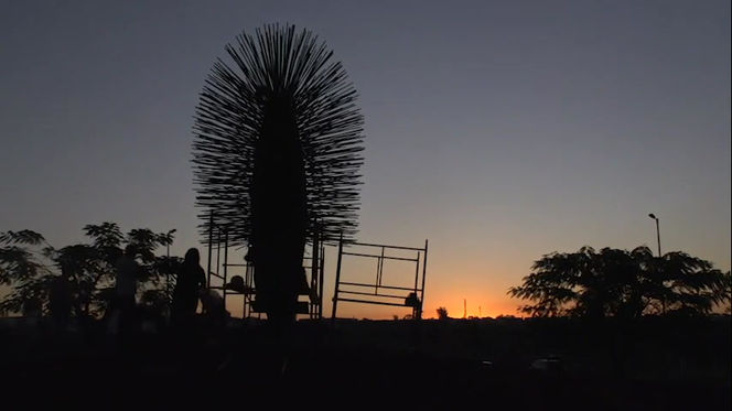 É uma alusão aos delicados flamboyants que contornam a praça. Construída em aço corten, é revestida de finas hastes que formam uma superfície “peluda” arredondada para causar um efeito cinético no momento em que o espectador contorna a rotatória gerando um efeito semelhante à ilusão de ótica causada pelos finos galhos das árvores quando passamos por elas em velocidade.